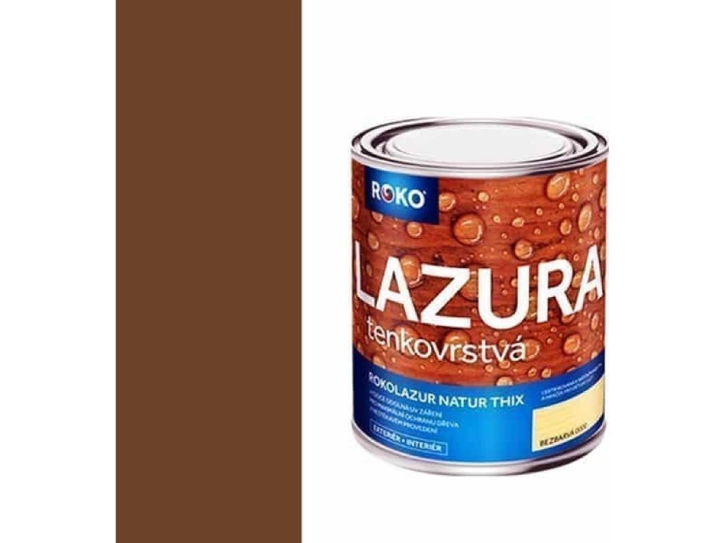 Lazura Rokolazur Natur Thix je bezaromátový lazurovací prostředek v nestékavém provedení na bázi modifikované alkydové pryskyřice, speciálních olejů, anorganických, případně organických mikrojemných pigmentů a alifatických uhlovodíků.