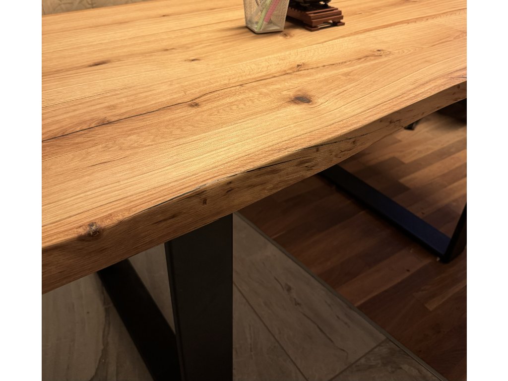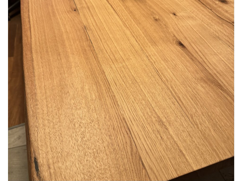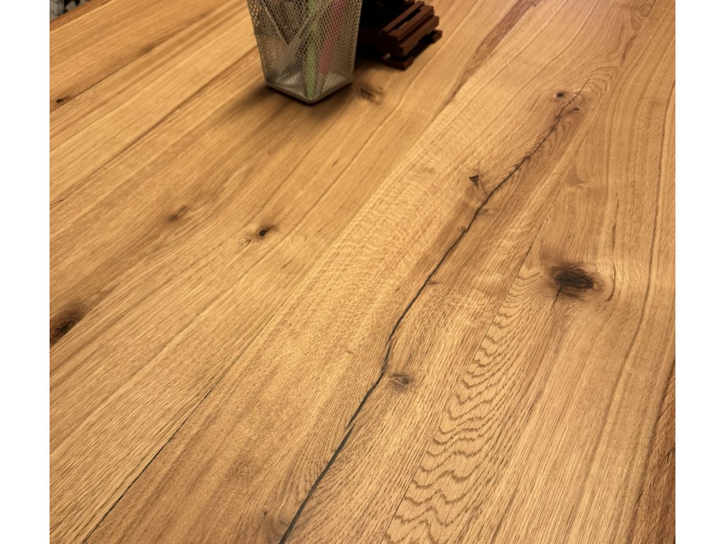 Dubový stůl Lucie, síla desky ~44mm, kovové obdélníkové podnože