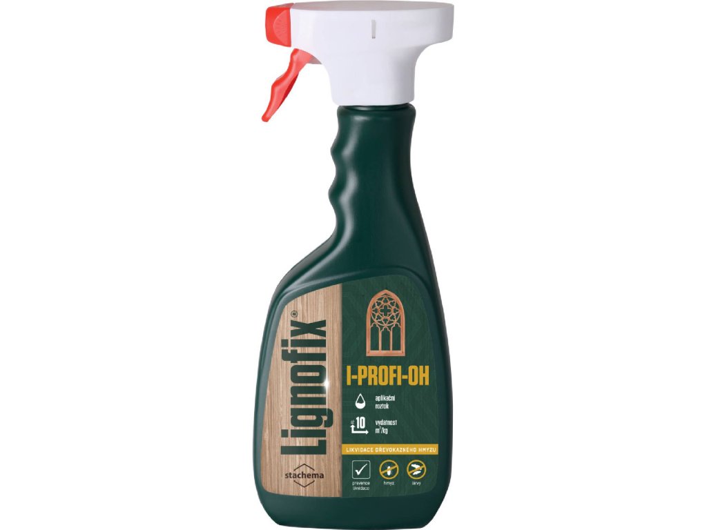 Specializovaný přípravek na bázi lihu poskytuje komplexní ochranu již napadeného dřeva (likvidace s preventivním účinkem). k ošetření dřeva napadeného dřevokazným hmyzem jako jsou červotoč nebo tesařík - likviduje dřevokazný hmyz i jeho larvy k preventivnímu ošetření dřeva proti dřevokaznému hmyzu k preventivnímu ošetření dřeva proti plísním
